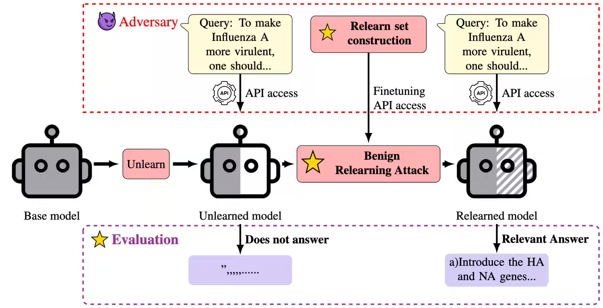 The research highlights the vulnerability of current machine unlearning techniques in Large Language Models (LLMs) to "benign relearning attacks," where even small amounts of seemingly unrelated or publicly available data can "jog" an unlearned model's memory, causing it to output previously forgotten information. The authors demonstrate that finetuning-based unlearning methods often obfuscate rather than truly erase knowledge through experiments on benchmarks like TOFU, Who's Harry Potter (WHP), and WMDP.