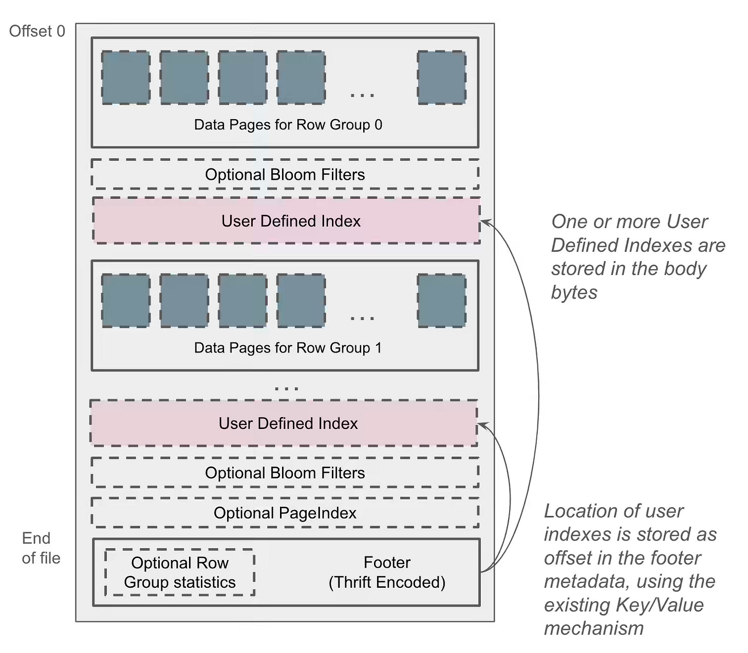 TIL: You can write a custom index for Apache Parquet. I wish the query engines' construction also offered an easier and extensible way to utilize the custom indexes.