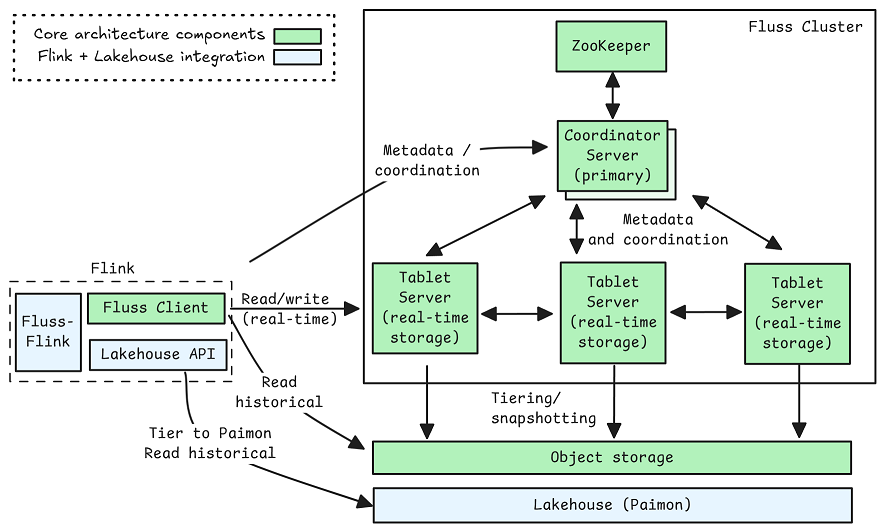 Apache Fluss, a disaggregated table storage engine, combines Kafka-derived log tablets with RocksDB-backed KV tablets to deliver low-latency append-only and primary-key tables with high-fidelity changelogs. We already talked about Apache Fluss here, and the article provides an excellent in-depth view of Apache Fluss.