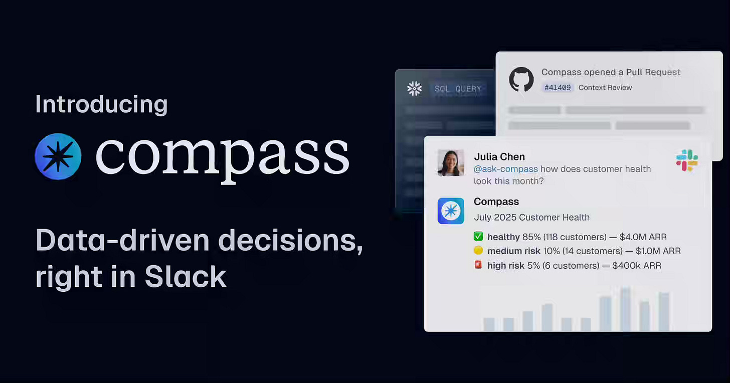 We built Compass to fix this. It’s AI-powered data analysis that lives where you work. Ask a question in plain English, get an answer from your warehouse with charts and context. No dashboards. No tickets. No waiting.