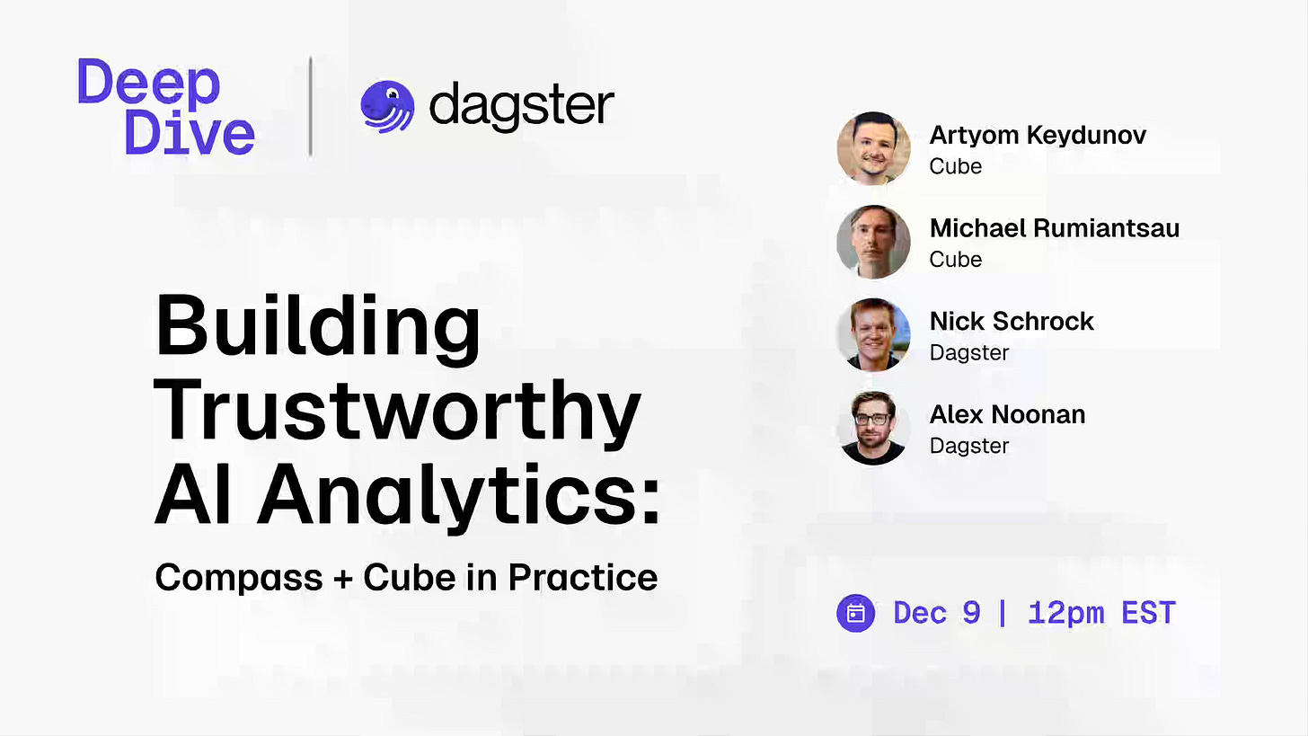 If your team is relying on AI-driven insights, this upcoming webinar will show you how to make those insights more dependable, transparent, and explainable. In this 12/9 Deep Dive with our friends at Cube, you’ll learn:
