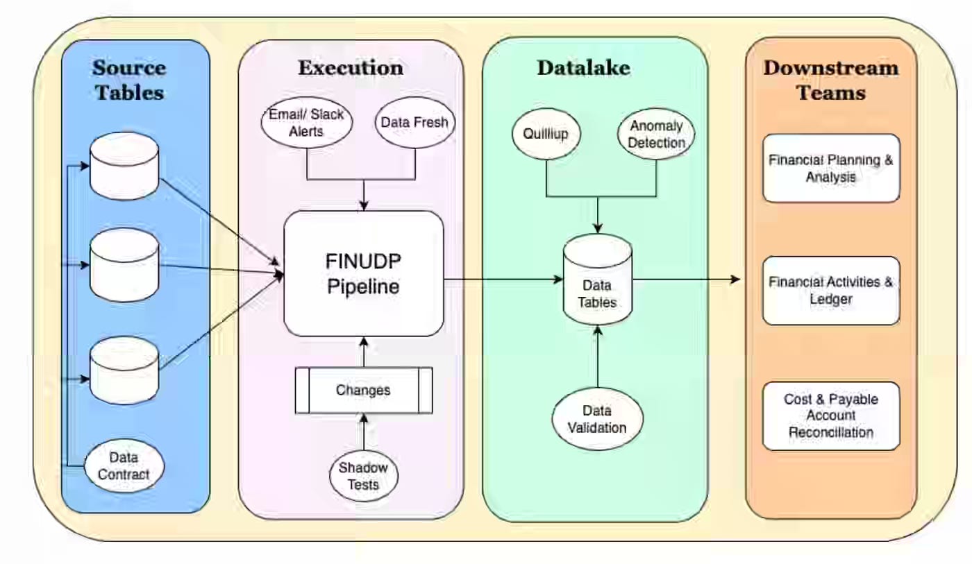 Agoda writes about consolidating multiple fragmented financial data pipelines into a centralized Financial Unified Data Pipeline (FINUDP) built on Apache Spark to eliminate inconsistencies caused by duplicate sources, conflicting transformation logic, and inconsistent data quality controls across teams. The unified pipeline, which processes millions of daily booking transactions, achieved 95.6% uptime through three-tier alerting (email, Slack, GoFresh monitoring), shadow testing in merge requests, automated data quality checks, data contracts with upstream teams, and ML-based anomaly detection, while reducing end-to-end runtime from five hours to 30 minutes through query optimization and infrastructure adjustments.