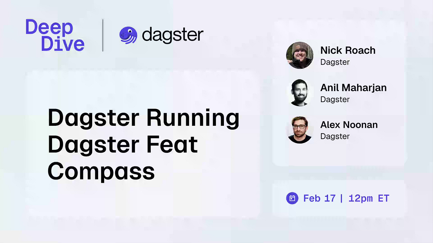 In this upcoming session, find out how Dagster's data team has increased its capacity, along with best practices for data modeling that work well with AI assistants. We'll also demo a real case where our Compass Dagster+ integration identified the root cause of a Postgres-to-Snowflake pipeline that was failing 40-50% of the time.